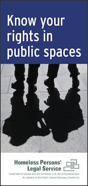 The Homeless Persons’ Legal Service (HPLS) at PIAC has put together a brochure outlining people’s rights in public spaces – and particularly aimed at people experiencing homelessness in the inner city of Sydney, but relevant to all public places in NSW. The brochure is current at August 2018.